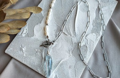 いっきに春めいてきましたーー٩(๑´3`๑)۶ ぽかぽか快適〜♬ でも花粉が〜(笑) 外ではマスク必須ですが、春の陽気は幸せを感じる私です🌸 氷柱クリスタルネックレス出来ました 着画 商品仕様 効果 販売先 氷柱クリスタルネックレス出来ました ブルークリスタル(水晶)の透明感や涼やかさの中に、淡水パールの清楚な雰囲気が加わり、アンニュイで洗練されたネックレスです。ゆるめのモノトーンスタイル(オーバ…