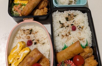 こんにちは。 今日で2月が終わりますね。 今月は短い分、いつもより早く感じます。 さすが「2月は逃げる」ですね。 その中でもオリンピックが開催され、沢山の感動を与えて頂きました。 トップアスリートの方々の素晴らしいパフォーマンスは、本当に惹きつけられますね。 先日の夫と中学生2人分のお弁当です。 食べ盛りの子ども達なので、とにかくボリューム重視にしました。 夫も普段から食欲がありますが、職場ではそ…