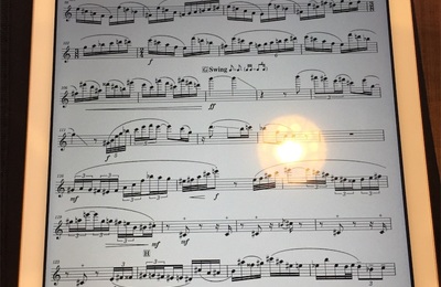Piascoreというアプリを使って楽譜を見るようにしています。このアプリは演奏者の要望をよくわかってらっしゃる。楽譜を取り込みやすく、書き込みやすく、ページ移行や拡大縮小登録もできます。上の写真は楽譜を表示した状態。鮮明です。(照明が映り込んでしまってますね。。) 楽譜の取り込み方はいくつか方法が用意されてます。カメラアプリで撮影して取り込むか、スキャナでPDF化して取り込むか。私は後者を取って…