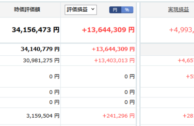 中東情勢が一気にきな臭くなってきたので、暴落する前に含み益の記録を残しておく。 楽天証券 マネックス証券 SBI証券 SBIVCトレード 総リスク資産は46343732円。 含み益の合計は+17754878円となる。 資産は4600万を突破し、含み益も過去最高の+1775万に。 明日以降大きく下がるなら、いろいろと買い増ししていきたいところではある・・・ にほんブログ村