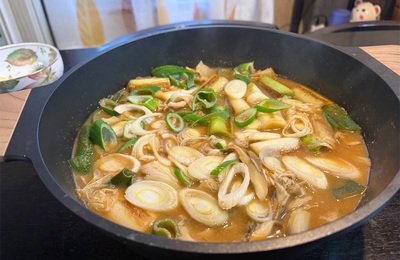 昨日のことになりますが、メガドンキに買い物に行った時に、埼玉県産「深谷ねぎ」が売り場に山積みになっているのが目に入りました。元々ネギ好きなので近くに行ってよく見ると、同じ棚に「深谷ねぎ鍋つゆ」というものを発見。そろそろ鍋にしようかという話をしていたばかりでもあり、即時購入決定!まったくドンキも商売上手です😅 というわけで完成した深谷ねぎ鍋。味噌仕立てで、具はネギのほか豚肉、舞茸、白菜を入れました。…