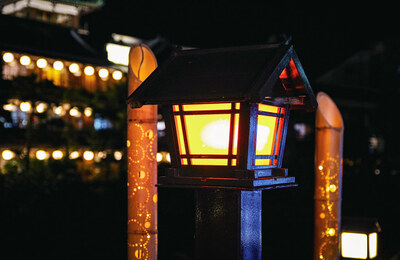 灯篭も灯っています バックを東海館と絡めて 灯篭をもう一枚 同じ様な竹灯りですけど ひとつひとつ 形が違うのがお分かりになりますでしょうか 今度は絞っての撮影 当時は仕事帰りで撮影できて良かったです (駅近く) 今は通勤5分になってしまいましたね