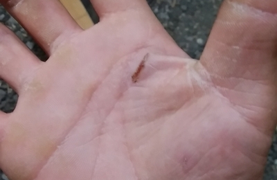 本日は2階野縁ヾ(o´∀`o)ノというか‥。足場屋さんいつ来るのよ!?下屋上足場掛けてないから紙も貼れんヽ(`Д´#)ノんで‥。設備屋さんいつ来るのよ!?給排水配管するの待ちぼうけで根太も転がせないよ!さらに‥。監督さん!サッシちゃんと頼んでよ!たまたま昨日サッシ屋さんの営業来て発覚したけどまだサッシ発注になってないってよ!?極めつけ‥。 刺?というか材木から出てた超巨大ささくれにスパッとやられた…