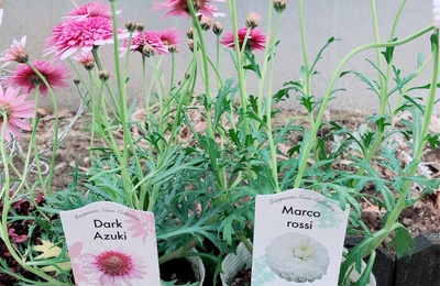 今年新しく植えた苗。忘れないように… メインで目立たせたいお花。 少し切って家の中にも飾りたい マーガレット ダークあずき マーガレット マルコロッシ この、マルコロッシ、コロンとしていて本当に可愛い。ダークあずきもなんとも言えない色で見れば見るほど可愛いお花です。 メインの横に添えたいお花 バンデラ パープル ディコンドラ アクセントに カロケファルス プラチーナ ティントロゼ 可愛いと思って買…