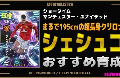 今回は「ショータイム:マンチェスターユナイテッド」で登場したイングランド・プレミアリーグのマンチェスターユナイテッド版、スロベニア代表FW「ベンヤミン・シェシュコ」のおすすめ育成をご紹介します。 イーフト2026|まるで195cmのクリロナ「シェシュコ」おすすめ育成(フェノミナルフィニッシュ・バレッドヘッド)【ショータイム:マンチェスターユナイテッド】 イーフト2026|まるで195cmのクリロナ…