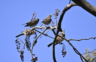 近隣の公園のイイギリには実を食べにヒヨドリ、ムクドリ、ツグミなどがやってきます。 このときはツグミの群れが実を啄んでいました。高さが6、7mとそれほど大きなイイギリというわけではないですが、それでも毎年かなりな量の実をつけます。 次に向かった多摩川ではノスリの飛翔に出会いました。 手前にボケて写っているのはセンダンの木で、この木の実も上に挙げた鳥たちの越冬食になっています。 センダンの木と ランキ…