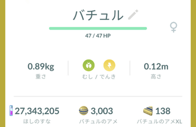 ゴプラがゲットしてました! バチュルの色違い! ズピカの色違いも欲しいな~! 君じゃないんだよな~。 でも色違いは嬉しいですね!