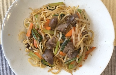 ごまめ自家製焼きそば・1589〜2026.02.16 “鶏きももやし焼きそば” 鶏肝の甘煮を使って、もやしと一緒に良く焼いた中華麺で焼きそばを。この頃、オイスター、鶏ガラ顆粒、麺つゆ、お酢、などを入れて味つけ、まあ、間違いありませんな・・・。 ランキング参加中麺類全般