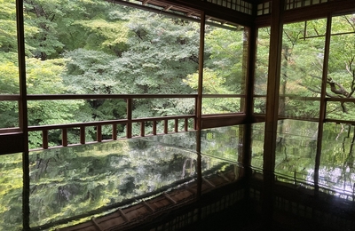帰省中の息子が比叡山延暦寺に行きたいと言うのでせっかくなのでその途中でどこかもう一か所立ち寄ろうかなと考えました。雨予報だったこともあり試しにCopilot君(生成AI)に出町柳付近で雨の日におすすめのスポットを聞いてみたところ出てきたのが「瑠璃光院」。たしかに雨に濡れた木々の緑は鮮やかでいいかもと思ったので彼の案を採用することにしました。「瑠璃光院」という名前にピンとこない方も多いかもしれません…