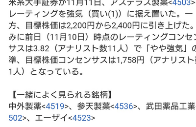 やっとプラ転したらアステラス製薬! 配当高いし、コツコツナンピン買いして粘った甲斐がありました。高配当キープし続けて貰えるなら、ファシリティドッグ支援も行っている企業なんで、このままホールドのつもりです♬ がありましたー😆