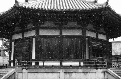 LeicaMMonochrom(Typ246)+Leitz Xenon 50mm f/1.5で撮影 久々のブログ記事の投稿。さらに久々の奈良県の雪景色。確か2014年に大雪が二月に降って以来だと思う。この日は朝に法隆寺へカメラを持って急ぎ向かった。西院伽藍にはあまり雪が積もっていないことを確認したので、そこはスルーして東院伽藍へ向かった。ちょうど夢殿を撮影しようとしたところへ、まとまった雪が吹雪い…