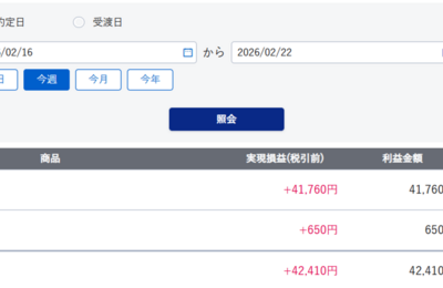 2026年2月16日週の収支は +85,019円 でした トライオートFX +6,804円 みんなのシストレ +58,984円 トラリピ +3,991円 松井自動売買 +6,561円 株等の売買 +8,679円 合 計 +85,019円 1.FX 今週は、ある程度の変動があり、十分な収益がありましたトライオートFXの損益は +6,804円 で、少ない収益でした。評価損益は -6,849,997 円…