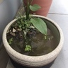 青汁?と化したグリーンウォーター グリーンウォーターで幹之メダカの稚魚を9匹飼育していたのですがこの容器のグリーンウォーターだけが濃度が上がり真緑で青汁を思わせるぐらいの濃さとなっていました。日光のよく当たる場所で放置状態。水位が下がると足し水のみ。餌は定期的に与えている状態でした。幹之メダカの姿は見えない状態で餌を与えると水面が動く事で生存を確認していました。果たして9匹とも元気なのでしょうか?