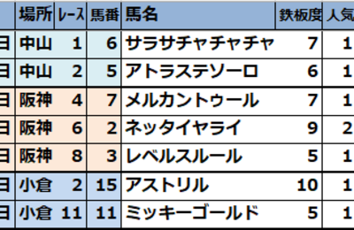 【JRA競馬偏差値予想表・厳選軸馬(先週の成績結果)】2026年2月28日・3月1日(3月第1週) ★2026JRA中山・阪神・小倉開催 3月第1週★ 1【厳選軸馬】2026年3月第1週成績結果 先週行われた 【2026 厳選軸馬 成績結果】 【2026 厳選軸馬@馬券のミカタ】 【2026 JRA競馬偏差値予想表リニューアル版(完全無料指数)】 【2026 中央競馬予想(先週の成績結果編)】 【…