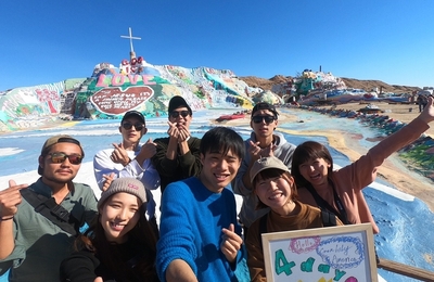 アメリカ横断DAY4 この日の目的地は、サルベーションマウンテン! サルベーションマウンテンは、インスタ映えスポットとして有名ですね。砂漠の中を走っていると、突然現れるカラフルな猿ベーションマウンテン。1人の男性が30年かけて作ったそうです。 ほんっっっとに突然現れた・・・! カラフルでポップでとーってもかわいい!! 山以外にも置いてある車とかもたくさんあって、どれもとっても可愛い! インスタとか…