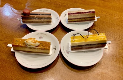 どうも!テレビの音量が勝手に上がるんですが…故障でしょうか…📺 さて、食後はデザートです🤣 グランディール アンサンブル やはり鎌倉…オシャレです✨️ 和田塚駅が最寄りです! 店内もめちゃくちゃオシャレです! どれにしようかな… 美味しそうです(*´﹃`*) ポム 濃厚なキャラメルとゴロゴロ入ったりんごのコンポートの食感が良かったです😋 ショコラシトロン 見た目は濃厚なショコラですが、予想を良い意…