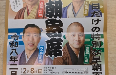 鈴本演芸場の「早朝寄席」が復活するのを記念した特別落語会へ足を運びました。早朝寄席は二つ目さん達の勉強機会として、毎週日曜日の10時に高座に上がる寄席ですが、この日は復活を記念して玉の輔、扇辰、菊之丞、一之輔(敬称略)という落語協会きっての師匠たちが出演するのです。 朝から雪交じりの天気で、客足に影響ありかとの考えも頭をよぎります。ただ前日に一花さんのポストで「入場早めることもありうる」との拝見し…