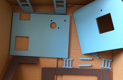 昨日からこのドールハウスキットを作成しています。カフェ・スタイル 犬と暮らす部屋。 この壁と屋根の色を変えたいので私はペイントするよ! 使った画材はいつもの100均で購入したペイントカラーだ! 撮影が雑ですみませんね。 本当は白色塗ってからピンクにした方が色が反映するかと思ったけど、直接水色の壁の上にピンク色を塗りました。 なんか色の塗りなおししたみたいでいいかなーと。2,3回塗ってこんな感じ。 …