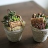 これは前に登場した苔テラリウムですね! 「ユキノシタの赤ちゃんを追加して良い感じ」と母さんメモにありました。 暑くて母さんも庭に出るのが大変なので、本日ご紹介のみなさまは室内コーナーメンバーズになるそうです。 こちらはシュガーバインの大奥様でございます。 右が大奥様、左が若奥様でございます。分家されたようですね。 チーママと チーチーママまで出店されたようです。大繁盛ですね。 あれ? 春にムスカリ…