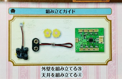 299号をやりました。 299号は外壁を組み立てる㉖、天井を組み立てる④ 下記の部分です。 今号の付属パーツ。 作業終了。また花パーツ2つ貼りつけてLEDライトと基盤を取り付けました。 次号の予告。いよいよラストです!!😸