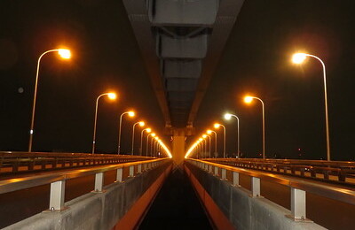 立川・日野の境界線にかかる立日橋は、それはもういい橋です。 都道と多摩都市モノレールがわたる独特の構造になってる上、夜のナトリウムランプの美しいこと! 日野橋からの近景(と、川面に映る照明)の美しさ、遠景の存在感いずれも素敵ですし、 多摩都市モノレールがわたる姿もまた美しい。 さて、その立日橋ですが、 変な位置から撮影してきましたw 左右対称が美しい、なかなかいい景色です。 この位置、橋脚の根本付…