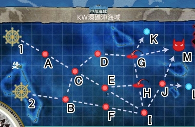 まず6-5のマップです。今回ACDGMの5戦です。Gが空襲戦なので輪形、他は単縦でよいでしょう。Cは複縦もありかもです。ゲージは6回ボス殲滅で破壊できます。ボス殲滅2回した後は敵航空隊が当方の基地を攻撃してきます。 次にクリア時のボスマス動画です。通常、イベ海域含めて深海側初の連合艦隊の雰囲気を感じてみて下さい。基地航空隊の支援もあり、また随伴艦が大した事ないので、さほど深刻ではないです。実際私は…