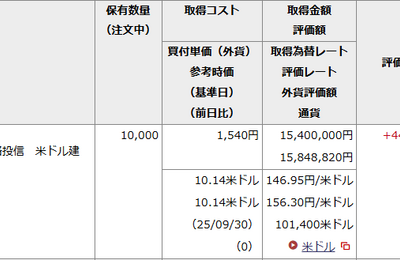 ゴールドマン・サックス・プライベート・クレジット戦略投信 米ドル建て の運用報告です。73日目となりました。 円安が進み、含み益が増えておりますが、インカムゲイン目的ですので無視します。 分配金は $398.44 → $398.43 と微減でした。 毎月分配金を頂けるのは無収入の私にとってはありがたいことです。 2025.11.28 (73日目残高)ゴールドマン・サックス・プライベート・クレジット…