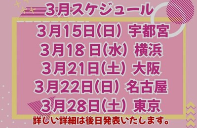💜ツアースケジュール発表🧡3/15(日) 宇都宮3/18(水) 横浜3/21(土) 大阪3/22(日) 名古屋3/28(土) 東京5/7(木) 大阪5/9(土) 兵庫5/17(日) 名古屋5/23(土) 札幌5/30(土) 東京※詳細は後日お知らせいたします。お楽しみに🪄✨#MIDNIGHTDRIVE pic.twitter.com/fqAG2MXyVe — MIDNIGHT DRIVE (@MN…