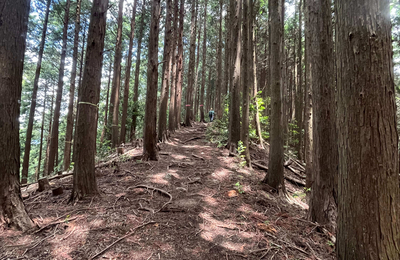 烏岳~ 登山に行ってきました。 烏岳という家から近い545mの低山です。 私には丁度いい山でした。 登り始めは杉や檜の針葉樹林で昔、林業が盛んな 地域だったみたい。 その名残でコンクリートの道や 石垣の様なものも残っていました。 山道は少しフカッとする土が気持ちよくて 上の方に行くと木々はきれいなグリーンの 葉っぱですごく目にやさしい! 桜の木も沢山あり、春にはきれいだろうなぁ。 休憩しながら1時…