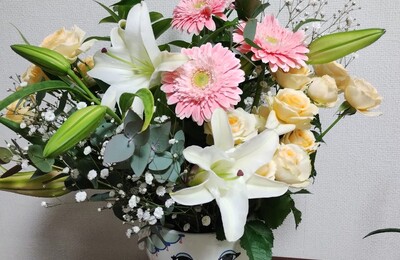 エヴァです。 ・カサブランカ ・スプレーバラ ・ガーベラ ・ユーカリ ・かすみ草 卒業のシーズンですねぇ(お花の色味がなんとなく…笑) 昨日八朔を頂きました(*^_^*) なんて大きくて美しい八朔…(☉。☉)! 畑に(勝手に)出来てるんだって〜。 すご(☉。☉)! 地元の土地持ち一軒家いいなぁ〜。夏も冬も果物や柑橘類は無料で食べ放題?(~_~;) 一軒家冥利につきますね(*^^…