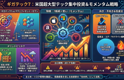 ギガテック7 ギガテック7の特徴 ギガテック7の基本情報 ギガテック7の投資対象と構成銘柄 ギガテック7とマグニフィセント・セブン比較 ギガテック7のメリットとリスク メリット リスク ギガテック7が向いている人・向いていない人 ギガテック7の投資法の提案 ギガテック7の出口戦略 まとめ スポンサーリンク ギガテック7の特徴 米国の超大型テクノロジー企業7銘柄に絞って集中投資するアクティブファンド…