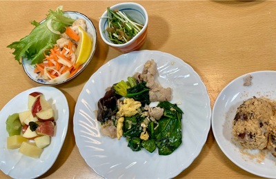 昼は 「男の料理教室」での共同作品。 キクラゲと豚肉の卵炒め、水菜とザーサイのサラダ、鶏ささみの南蛮漬け、簡単おはぎ、フルーツの盛り合わせ 夕食は カルボナーラうどん 昼は2時間かけてのランチ。同年代の男女のランチオン雑談は楽しかった😃
