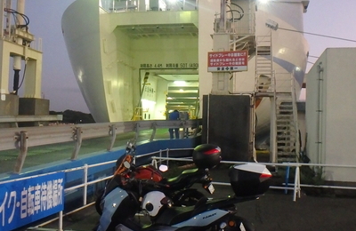 当初の予定では17:30迄には到着予定だった新門司港 阪九フェリーターミナルですが なんとか18:00に到着しました。 途中道路渋滞で コースを変更したのですが、頼り ないガーミンナビとグーグルナビに翻弄され、なんとか乗船には間に合いそうです。 大山ダムから新門司FTまでは約100km。下道で約150分の道程の見積でしたが、途中 渋滞で進まなくなり、道の先まで渋滞が続いていたので、急遽進路を日田市…