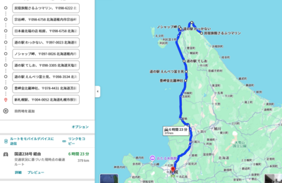 ~道の駅カントリーサインマグネット収集ツーリング~ 猿払の夜は暑かった。あまりに暑くて窓を開けて寝た。涼しい浜風が入ってくるが、オマケでもれなく輸送トラックの爆音もついてくる。そのせいで何度か目を覚ました。 朝食はいつも通り、セイコーマートの卵焼き、胡瓜の酢の物、納豆巻き、わかめおにぎり、ヨーグルト。これに加えて2リットルの水をまとめて買ったら800円を超えていた。ちょっと買いすぎ食べすぎだろうか…