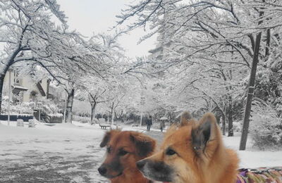 昨日の夜中から降り出した雪ですが、朝起きたら積もっていました。 颯馬の散歩を終えて・・・・ 行ってきました選挙に!! 途中の風景 今のところ、颯馬は血尿はあるものの落ち着いています。