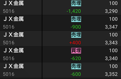 今日の収支 今日も負けてもうた… なんか思うようにあがらん 損切りまあまあできてるけど今日同値撤退と損切り多すぎ。 勝率悪い。 銘柄選びがうまくできない。 選定じゃなくて選ぶ場所が悪いと思う。 ランキングとかセクター分けとか。 今見てる範囲がせまい。 モニターも3枚目欲しいが。 ちょっと明日からの4連休で研究しよう。 スイングも検討しよう。