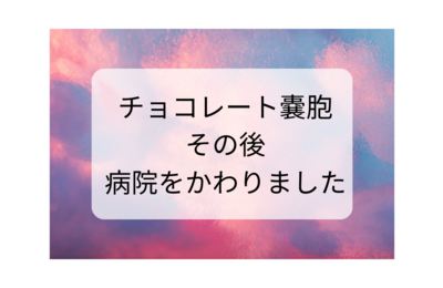 ↓ ↓ ↓ 応援クリックお願いします! ランキング参加中暮らしと、子育て ランキング参加中育児・子育て ランキング参加中ライフスタイル ランキング参加中【公式】2022年開設ブログ にほんブログ村 人気ブログランキング こんにちは。 zabuです。 久しぶりのブログです。 私は昨年秋から婦人科に通っているのですが その話を書こうと思います。 チョコレート嚢胞と診断されたその後の経過についても 書き…
