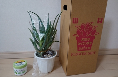 1年以上ブログを書いてませんでした。 久しぶりのブログです。 本日宅急便が来ましたが、心当たりがなかったのでなんだろう??と思いました。 しばらく前に株式会社ウテナ様のモイスチャーコールドクリームを購入しまして、アロエが当たる懸賞に応募していたのでそのアロエが届きました。 うれしい。 ※マッサージクリームはサイズ比較用に置いてあります。 アロエちゃんは鉢の下から上まで約40センチ程度ありました。 …