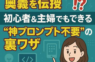 導入 最近ネットを見ていると、こんな見出しがズラリと並んでいませんか?「◯◯が出来る神プロンプト」「出来る◯◯が使う神プロンプト10選」…。どれも派手で惹かれるけれど、「私にもできるのかな?」と不安になってしまう方も多いのではないでしょうか。 でも実は、アプリ作成の最大の奥義は「やってみる」ことなんです。そして究極の“神プロンプト”は、たった一言「〇〇のアプリを作って」たったのこれだけです。 アプ…