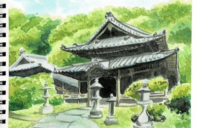 あけましておめでとうございます。 2026年最初の投稿です。 伊勢西国三十三所、番外札所の正福寺さまの本堂です。 三重県鳥羽市の山の中にあります。 2025年の9月にお参りし、12月に描きました。 とても立派なお寺で私の大好きな場所ですが、正福寺は難しく、うまく描けません。 2024年にも描いていました。 2022年にがんが見つかり、抗がん剤治療で起き上がれなくなりました。 なんとか起き上がれるよ…