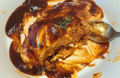 今日のお昼ご飯は、オムライスにしました。 デミグラスソースが良かったです。