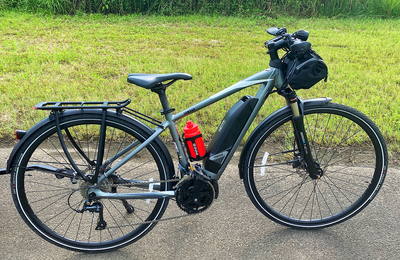 Introducing my E-Bike. This is an e-bike from Yamaha Motor Co., Ltd. The model name is "YPJ-TC". The frame is made of aluminum. The tire size is 700 x 35C. The shifter and front and rear derailleurs a…