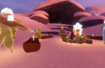 峡谷の隠者の峠に、「来訪する精霊団」御一行様がきてる。 来訪する精霊団+@ ちょうど段差があるところで、写真が撮りづらい場所にいるのよね。 一番右のママさんはただの案内役なので、それ以外の4人が今回の精霊団。 真ん中でマイケル・ジャクソンみたいなポーズをしてるのは、この日に私が連れていた渡りの季節の精霊さん。 精霊団を撮りたいのにど真ん中に映り込んでお邪魔なので帰ってもらった。 今度こそ来訪する精…