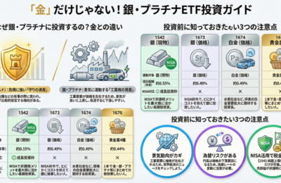 銀・白金への投資方法とおすすめETF はじめに 銀・白金投資の基礎知識 なぜ銀・白金に投資するのか? 金との違い:価格変動の特徴 銀・白金への投資方法(ETF以外を含む) 1) 物理的な現物購入(地金・コイン) 2) 先物取引 3) 貴金属積立サービス 4) 鉱山株・関連企業株 5) ETC/ETN(債券型上場商品) 6) CFD(差金決済取引) 投資方法の比較まとめ ETFによる銀・白金投資の詳…