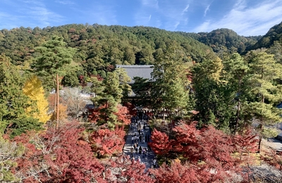 先週の連休に、南禅寺へ紅葉を見に行った。 これは三門の楼上・五鳳楼から見た景色。 冒頭から紅葉を関係ない話だけど、楼上へ続く階段がかなり急で、梯子を上り下りしているのとほとんど同じくらいの体勢で階段を上った。高い所が大好きなわたしでも足元がぞわぞわ。 しかし見下して見る紅葉は圧巻。紅葉の赤と山肌の緑のコントラストもよかった。どの木々も葉がもりもり生い茂っていて、自然が惜しみなく色を重ねてくれている…