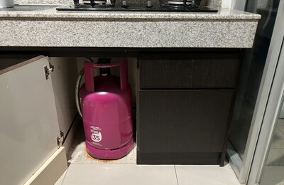 2025年11月9日 日曜日 日曜日の昼、昼ご飯を作ろうとレンジのスイッチをひねった。 火がつかない。 火が付かなくなったレンジ 「あれ、もしかして?」とレンジの下の扉を開けて、プロパンガスの残量を見る。 レンジの下の扉を開ける 濃いピンク色のプロパンガスの頭に付いている、小さな残量計を見る。 赤色の残量なし😱 残量を示すものはこのメータしか無く、ガス欠はいつも突然やって来る。 炊飯器のご飯は炊き…