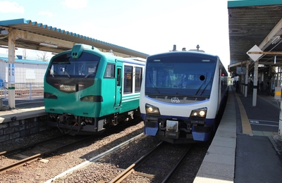 駅コレクションNO.183 <撮影日:2011年9月24日> 秋田県能代市にある能代駅。 1908年に開業した、JR五能線の2面2線の駅です。 スポンサーリンク リゾートしらかみどうしの列車交換です。 キハ40系橅編成(左)とHB-300系青池編成(右)。 能代駅のツアーはこちら↓ kako.dam-tour.com ダムラー旅行記トップページ(別ブログへ移動) スポンサーリンク