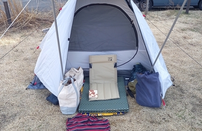 12/5(金)〜6(土)で、キャンプ行ってきましたー。 2週連続。前週はファミリーだったけど今回はソロ。 自分としてはだいぶヘビロテですが、前の時、幕が濡れたまま撤収してたのでその乾燥も兼ねてって事で。 はい、ソロなのにデカい幕! エブリィちゃんの横で鉄骨張ったの初めてだけど、これ多分エブリィが中にすっぽり入りますねw しかし、風がだいぶ強かったので、幕が風に煽られて張るのがめちゃ大変! 風上側か…