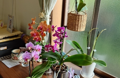 胡蝶蘭2鉢が元々我が家にはあるのですが、一昨年置いていた場所が寒いところだったようで蕾はできたものの、その後蕾膨らまず開花させることができませんでした。 寒さ対策で今年はリビングで育ててみたた結果、見事に3月花を咲かせることができました。 そして今年は4月に3鉢も増えてしまい合計5鉢を育てることに。 その中で本日現在も咲き続けている胡蝶蘭がひとつだけあります。 それがこちらっ 椎名洋ラン園さんの「…