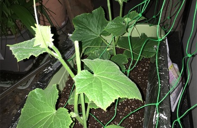 ぐんぐん成長してる(๑°ㅁ°๑)‼ 葉っぱは大きうなって、弦ものびてきてる。 ネットの支えを早くやらねば…。 《今日のきゅうりさん》